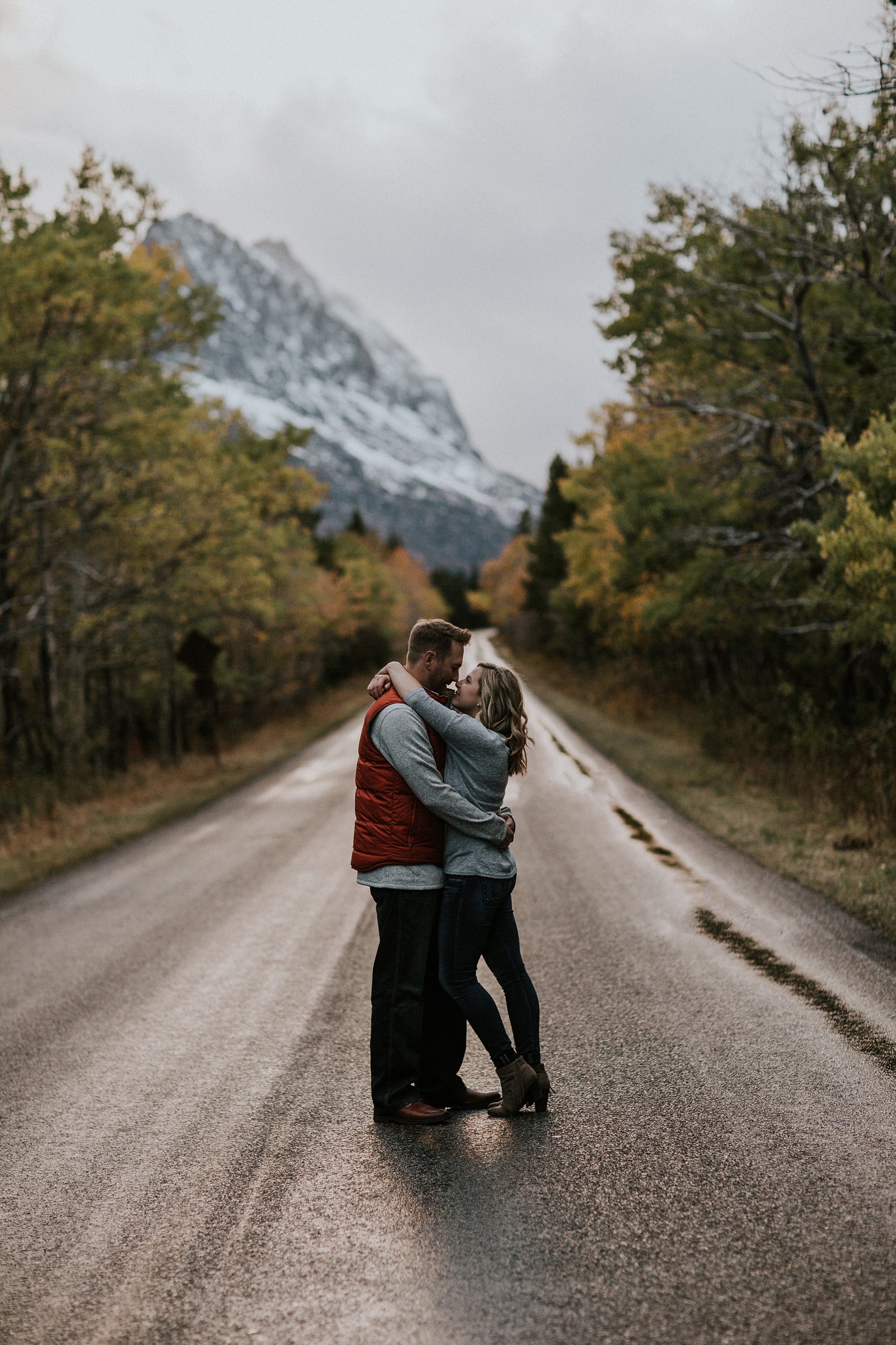 They knew right away they wanted engagement photos in Glacier, make a little adventure of it. They were drawn to Many Glacier but none of us had been there this time of year and it’s WAY up on the north east corner of the park near Canada. Everyone says the west side has more color than the east side. So we left it to think about. But last week I started seriously creeping instagram for photos of Many Glacier and there was lots of color, and it looked soooo pretty. Who ever keeps saying the west side is more colorful never made the effort to go around to the east side cause it’s UNREAL! They wanted mountains and up there is just prime. The weather didn’t look ideal by any means but it looked doable. We decided doable was worth the risk and we all drove the 5 hours up there.