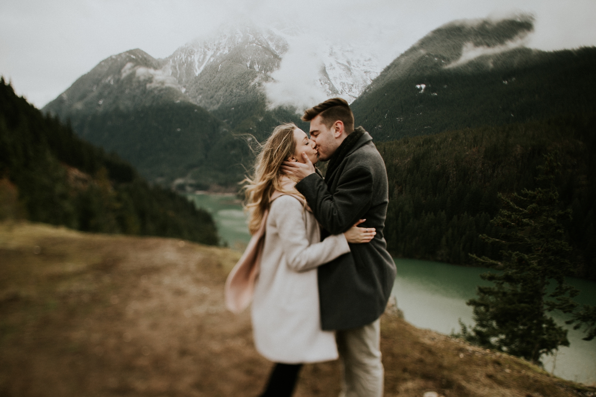 Lauren + Alex recently moved from Kansas to Seattle and knew right away they had to have their photos in the mountains cause Kansas doesn’t look like that haha. I threw out some ideas of locations and immediately they wanted Diablo Lake and we planned for it unsure of what the weather might be this time of year. We ended up moving the session up a day earlier cause our original day was calling for 12-14” of snow! It ended up being perfect. Didn’t even rain. The clouds hid the mountains a little but such a fun spot up on a little cliff in the “American Alps.” And sure enough give them something to do and they killed it. Even just walking towards me. Total babes and any second he could, Alex, would compliment Lauren or tell her he loved her. It was so sweet! C’mon how cute are these two?!